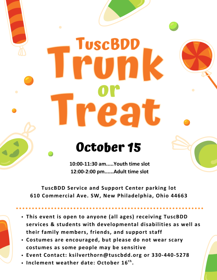 TuscBDD Trunk-or-Treat 10/15/25 (RAIN DATE: 10/16/25)TuscBDD Service and Support Center parking lot